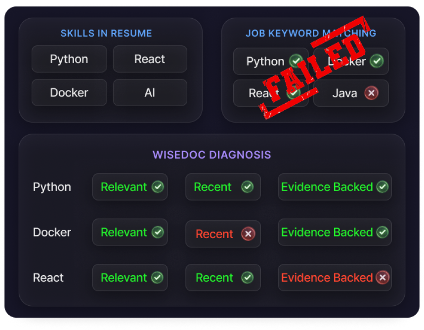 Wisedoc runs conversational AI interviews to assess real technical depth and job readiness