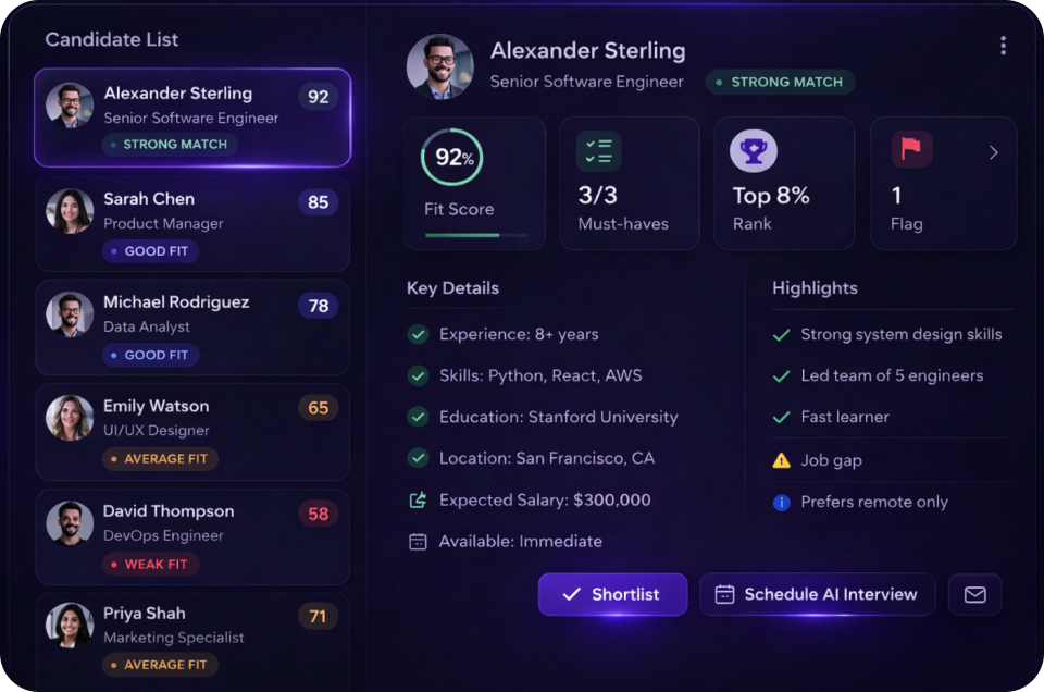 Advanced system designed to evaluate candidates across multiple dimensions, not just resumes.
